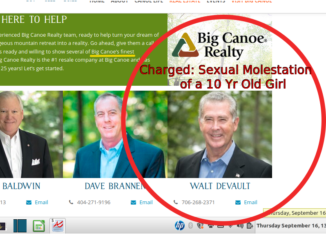 Ex-Big Canoe Realtor Walt Devault, unexplicably let out on unsupervised Bond for 3 counts of Child Molestation involving a 10 year old girl, has just had a Motion filed to Revoke his Bond for having interactions with 4 young girls at his new residence in S.C. No word on whether sexual misconduct was involved, however Mr Devault was “babysitting” the four girls, ages six (6). eight (8), ten ( 10) and eleven (11). Three Words: Unaccountable Justice System.