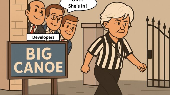 At the center of this storm is Liz Littleton, Chair of the Election Committee for the past four years. Littleton has presided over multiple election cycles, enforcing campaign restrictions and presenting herself as the neutral referee of Big Canoe’s democratic process. But here’s the bombshell: Littleton doesn’t even live in Big Canoe.