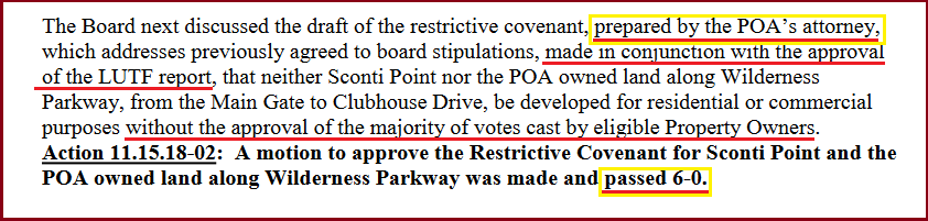 In 2018, the POA Board passed a Restrictive Covenant to protect Sconti Point and the Wilderness Parkway Property from Development!!!