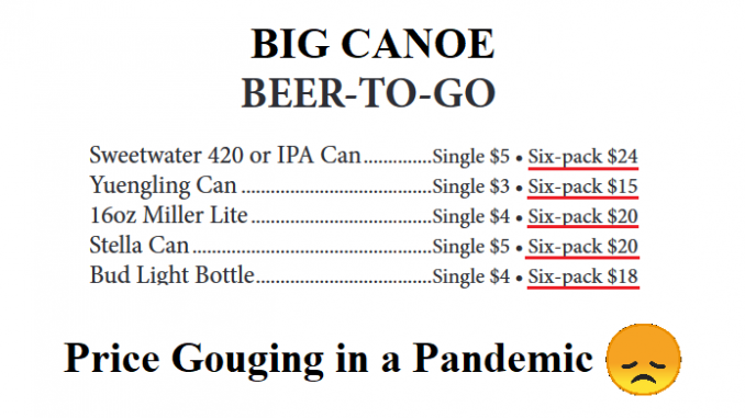 This Beer story may be a silly little example, but it is a real example, of how things are not being run in a manner that focuses on the best interests of the overall community – but rather on PROFITEERING. Considering that the Big Canoe POA is a NON-PROFIT charged with looking after the well being of the overall residents, I think that this story poses an excellent example question of “How does this Price Gouging of Residents in Times of a Pandemic benefit the Community?”