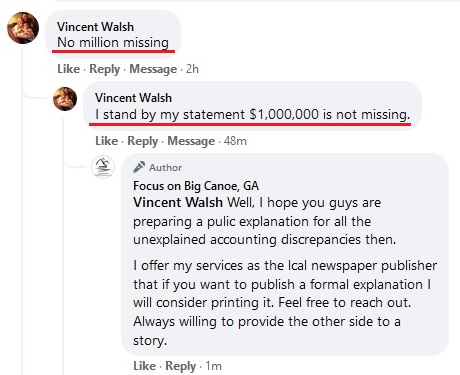 and then a couple of hours later, “I stand by my statement $1,000,000 is not missing.”