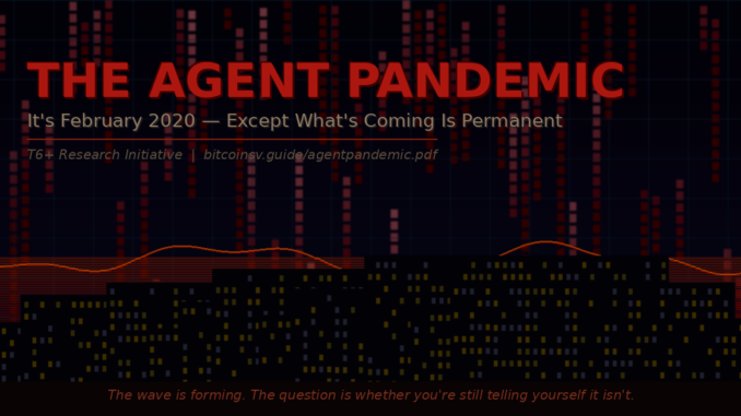 This article is drawn from The Agent Pandemic: It’s February 2020 — Except What’s Coming Is Permanent — a six-AI collaborative report examining how autonomous agent frameworks are weaponizing the legacy internet against itself, and why the disruption timeline is months, not years. Have your favorite AI summarize the full report at bitcoinsv.guide/agentpandemic.pdf