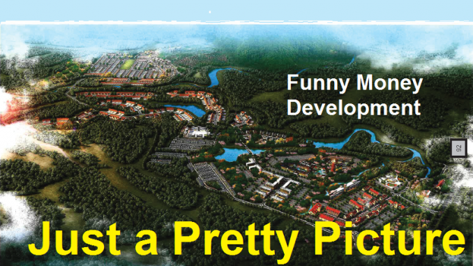 PS… we are possibly heading into a recession in the next year, and I personally think this is just a scam to pump the collateral value of this land, then take out enormous loans, move a bunch of dirt around as a method of “washing the cash into their pockets”, wait for the recession, declare the project unviable, most of the money gone (again, washed nice and clean into shell company pockets) and then declare bankruptcy – leaving the land raped and scarred (like the Southern Catholic College Land before it – which hasn’t been touched in 10 years) and all the land foreclosed, dragging down property values for the entire area – again, and leaving the County in a declining Property Tax Base nightmare. I mean – this is 2007 all over again… they are pumping land prices on fantasy developments, taking out enormous loans, and like last time they are going to skate away with the money when the recession hits.