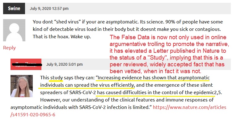 A Letter published in the June 18, 2020 edition of Nature, titled Clinical and immunological assessment of asymptomatic SARS-CoV-2 infections makes the following foundational claim: